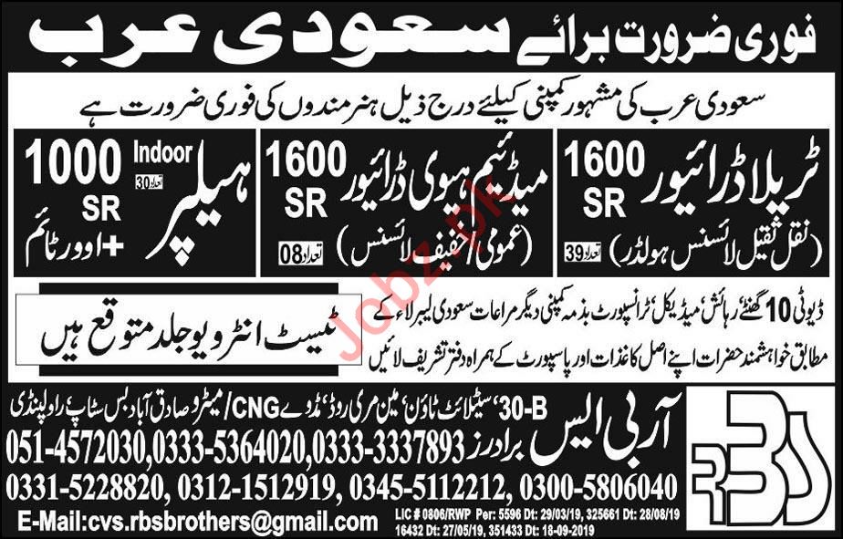 Latest RBS Brothers Recruiting Agency Driving Posts Saudi Arabia 2025