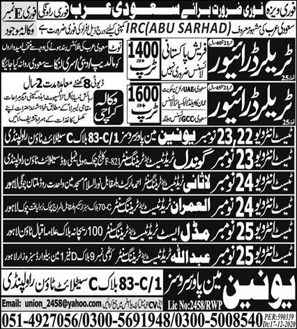 Latest Union Manpower Services Driving Posts Saudi Arabia 2025
