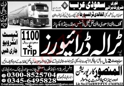 Al Mansoor Corporation Overseas Employment Promoter invites applications for job positions advertised in daily Express dated 23 July 2023 for following vacancies in Saudi Arabia, saudi arabia Saudi Arabia.