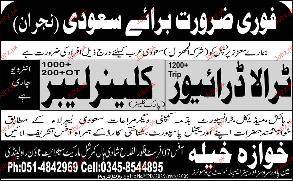 Tralla Drivers And Cleaner Labors Job Opportunity