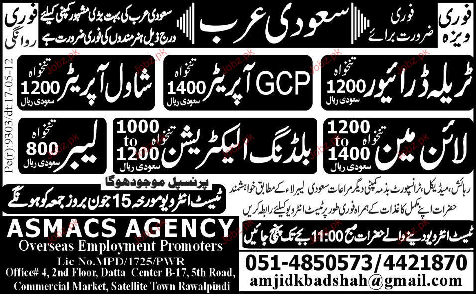 Tralla Drivers, GCP Operators, Shawal Operators Required