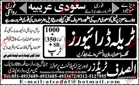 Tralla Drivers are required in Saudi Arabia.