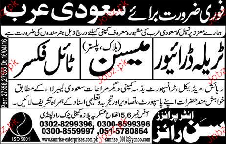 Tralla Drivers, Mason And Tile Fixers Job Opportunity