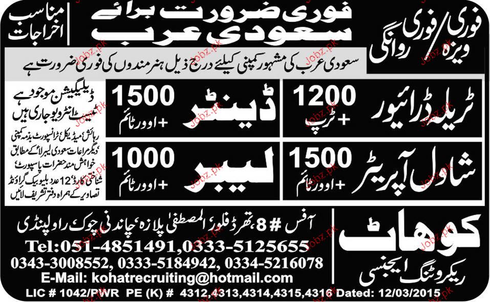 Tralla Drivers, Shawal Operators, Labors Job Opportunity