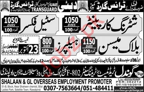 Vacancies in SHALAAN & GL Overseas Employment Promoters Advertisement October 2019