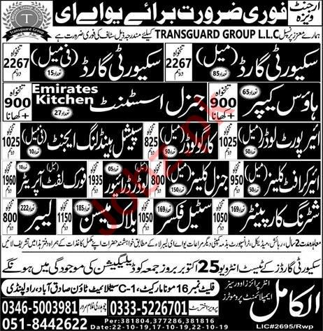 Transguard Group LLC is looking for qualified and experienced candidates for the positions of Security Guard, Housekeeper, General Assistant, Airport Loader, Cargo Loader, Aircraft Cleaner, General Cleaner, Loader Driver, Shuttering Carpenter, Steel Fixer, Block Mason and Labor in UAE 2019.