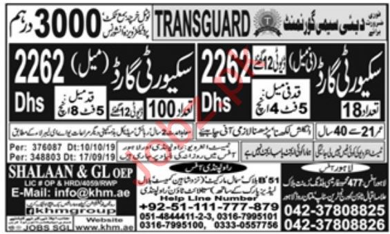 Latest SHALAAN & GL Overseas Employment Promoters Security Posts Dubai 2025