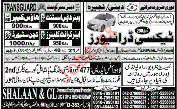 Latest SHALAAN & GL Overseas Employment Promoters Posts Dubai 2025