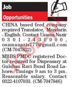 Translator & MBBS Doctor Jobs 2018 in Lahore