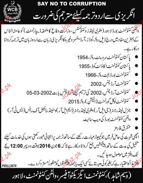 Translators Job in Walton Cantonment Board
