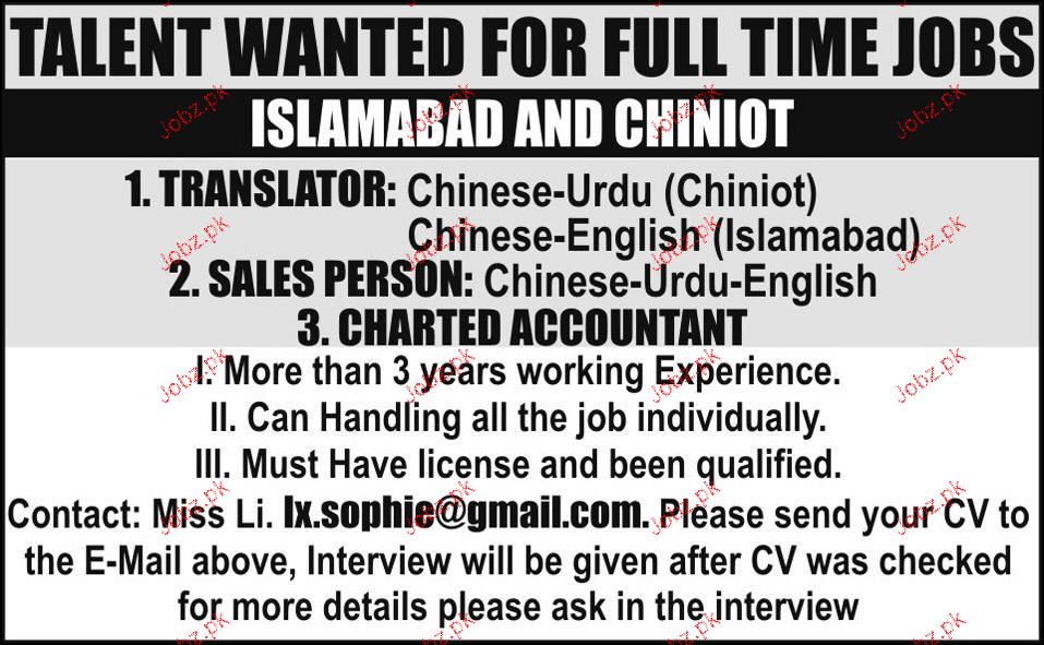 Translators, Sales Person And Accountant Job Opportunity