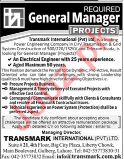 Transmark International Lahore Jobs For General Manager