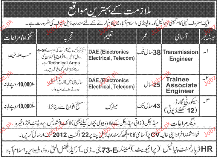 Latest Private Company Engineering Posts Islamabad 2025