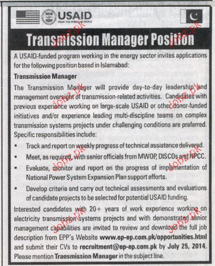 Apply as per details in job advertisement. Login to view further details of how to apply via https://www.jobz.pk online.