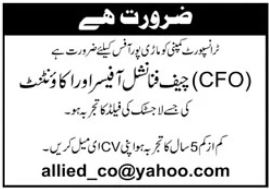 Transport Company is looking for candidates for following posts as per job advertisement published in daily Jang Newspaper of October 13, 2024 for location Karachi, karachi Sindh Pakistan: