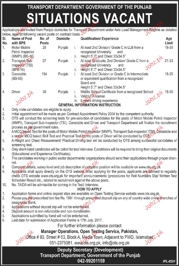 Apply as per details in job advertisement. Login to view further details of how to apply via https://www.jobz.pk online.