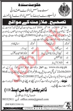 Vacancies in Transport & Mass Transit Department Advertisement October 2019