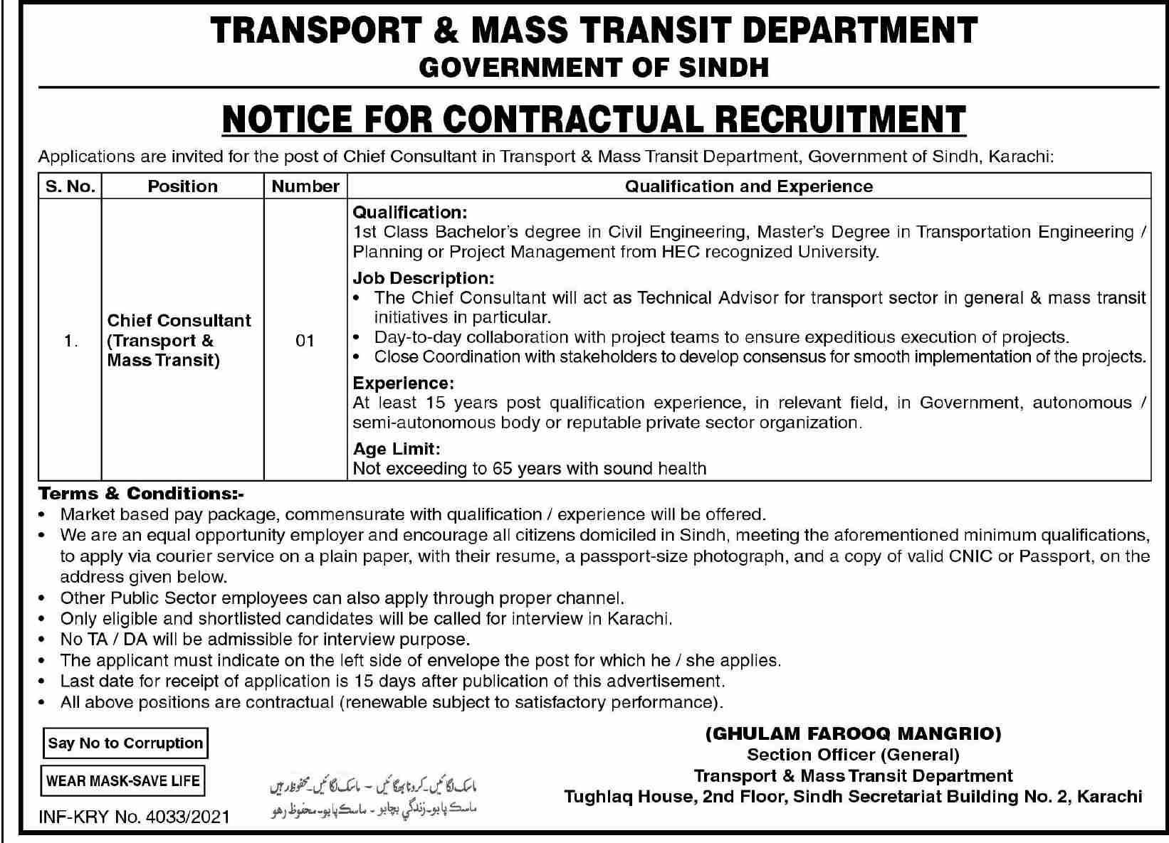 Transport & Mass Transit Department Sindh Jobs Consultants