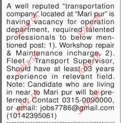 Apply as per details in job advertisement. Login to view further details of how to apply via https://www.jobz.pk online.