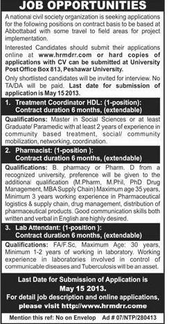 Apply as per details in job advertisement. Login to view further details of how to apply via https://www.jobz.pk online.