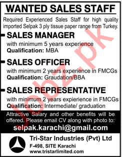 Tri Star Industries Jobs for Sales Manager & Sales Officer
