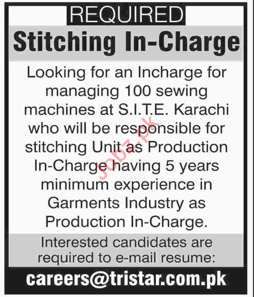 Tri Star Polyester Karachi Jobs 2019 for Stitching Incharge