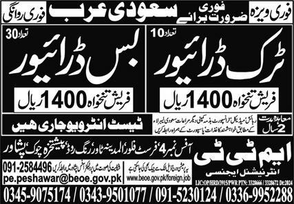 Apply at MTT International Agency latest Overseas jobs in Driving and departments before closing date which is around February 18, 2025 or as per closing date in newspaper ad. Read complete ad online to know how to apply on latest MTT International Agency job opportunities. Salary varies from 104000. Overtime might be allowed. Employer provides accommodation, medical and transport facility.