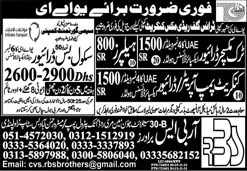 Truck Driver Helper & Concrete Pump Operator Jobs In UAE