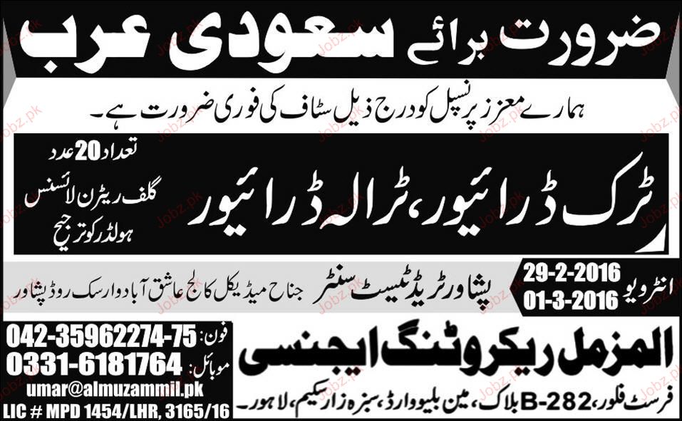 Apply as per details in job advertisement. Login to view further details of how to apply via https://www.jobz.pk online.