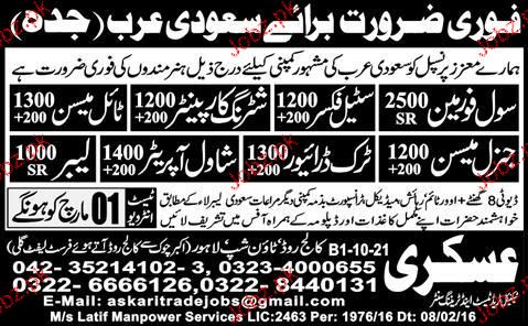 Truck Drivers, Shawal Operators, Tile Mason Job Opportunity