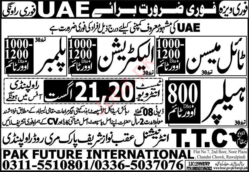 TTC International invites applications for job positions advertised in daily Express dated 14 August 2022 for following vacancies in UAE, dubai UAE.
