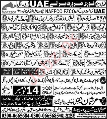 Arshman Manpower Bureau jobs advertisement dated about 13 November 2022 in daily Express Newspaper invites application for the vacant post of electrician, autocad draftsman, store coordinator, site helper, site technician, spray painter, electrical technician, qc inspector, qc assistant, furnace machine operator, extruder machine operator, erw tubemill operator, painting mason, helper mechanical, store helper, washroom cleaner, plumber, argon welder, welder, yard cleaner, auto manual facing operator, grooving machine operator, oracle technical consultant, cnc lath machine operator, chilled water pipe fabricator, crane operator, painter and bathman in Abu Dhabi, abu dhabi UAE. Educational qualifications required Matric, Middle and Intermediate etc.