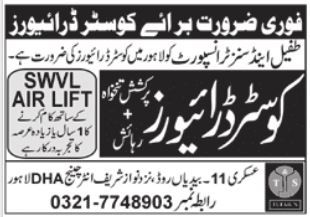 Transport Company invites applications for job positions advertised in daily Jang dated 13 February 2022 for following vacancies in Lahore Punjab Pakistan.