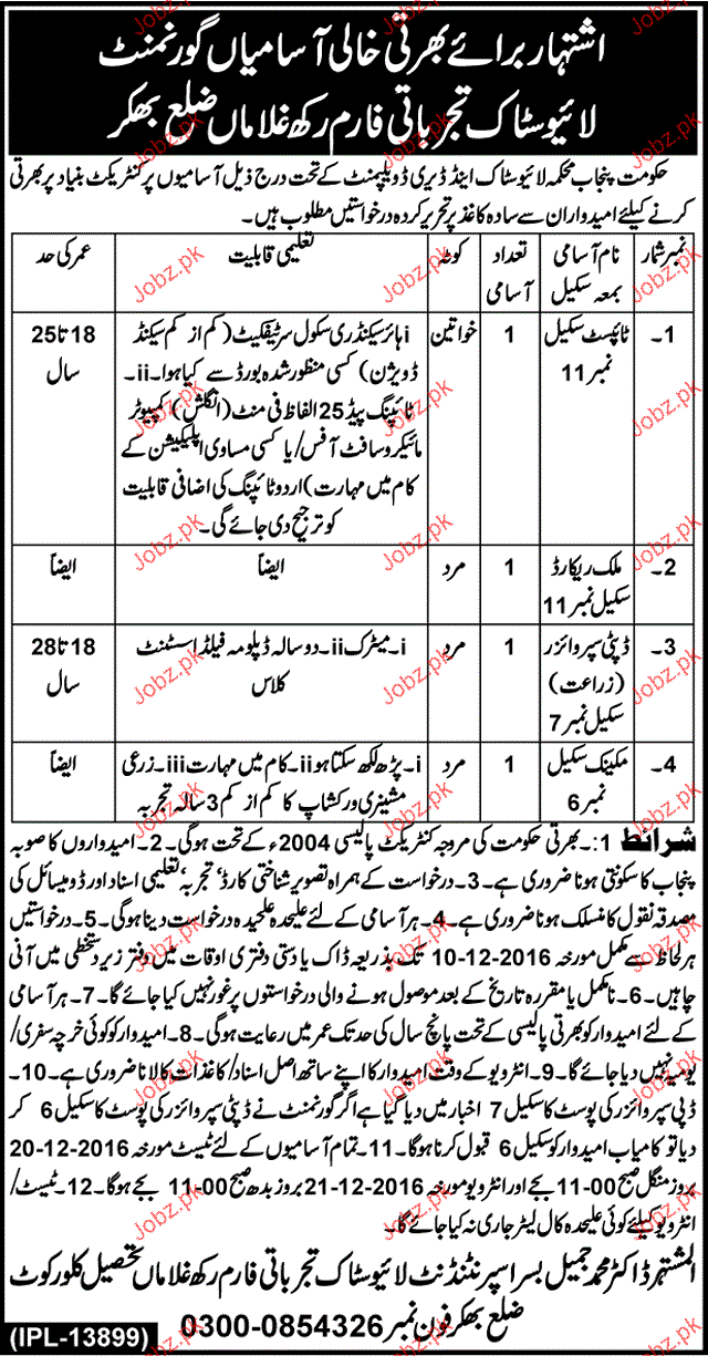 Latest Government Admin Clerical Posts Bhakkar 2025