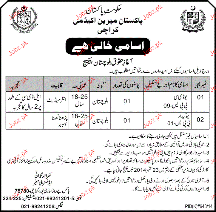 UDC and Chawkidars Job in Pakistan Marine Academy karachi