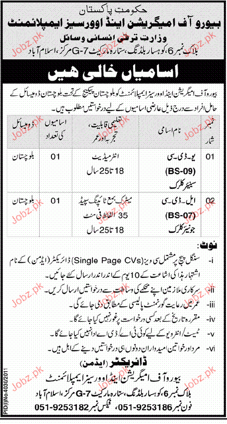 Latest Overseas Employment Corporation OEC Admin Clerical Posts Islamabad 2025