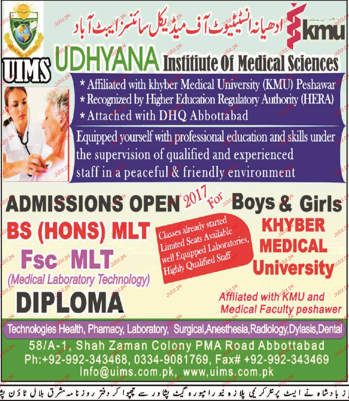 Udhyana Institute of Sciecnes Admission in BA and FSC in Abbottabad. Read newspaper ad for exact details.