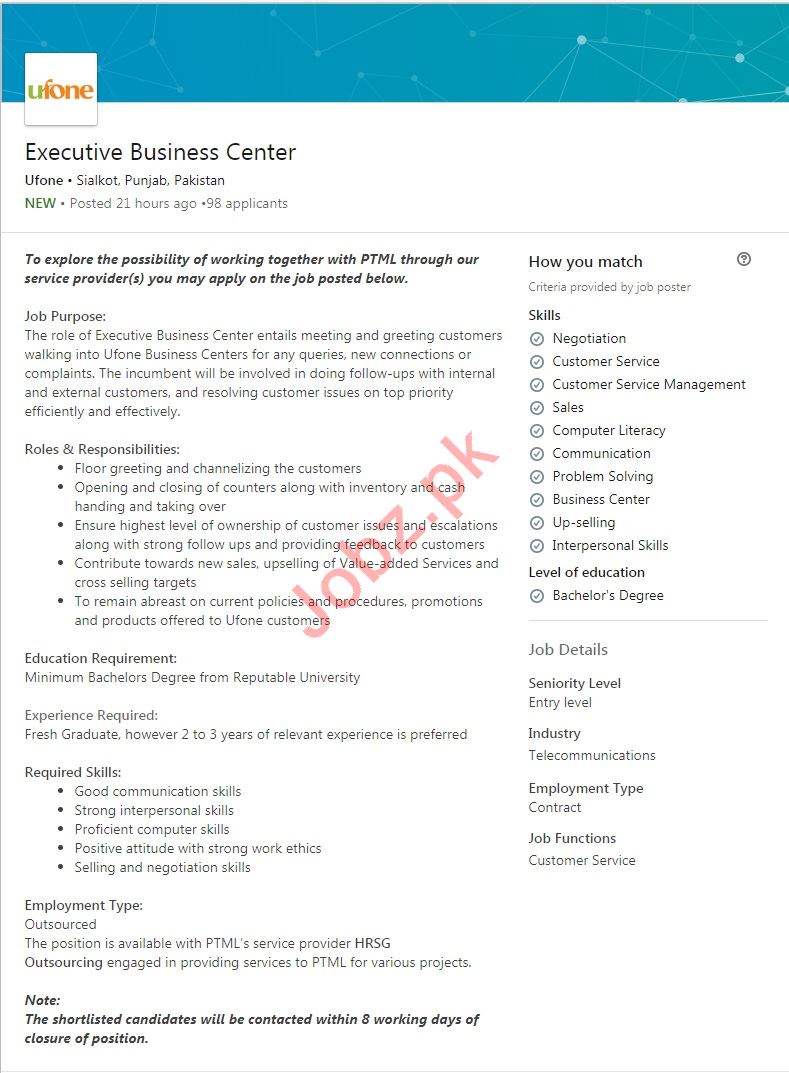 Ufone Mobile Jobs For Executive Business Center