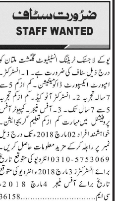 UK Logistic Training Institue Gulgisht Multan Jobs
