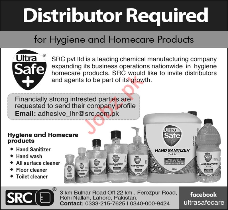 Ultra Safe Hand Sanitizer SRC Lahore Jobs For Distributor