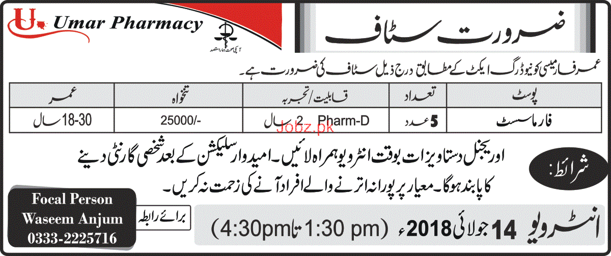 Latest Umar Pharmacy Medical Posts Peshawar 2025