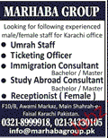 Umrah Staff, Ticketing Officer, Receptionist Job Opportunity