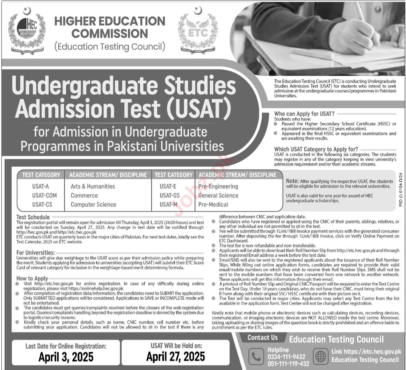 Vacancies in Higher Education Commission HEC Advertisement March 2025