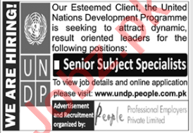 UNDP Islamabad Jobs 2020 for Senior Subject Specialist