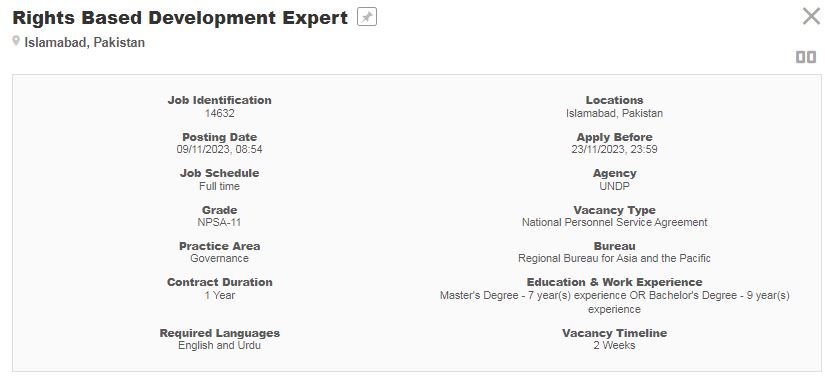 United Nations Development Programme UNDP is looking for candidates for following posts as per job advertisement published in daily Other Newspaper of November 14, 2023 for location Islamabad, islamabad Islamabad Pakistan: