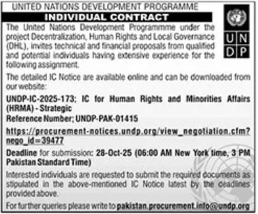 United Nations Development Programme UNDP invites applications for job positions advertised in daily The News dated 16 October 2025 for following vacancies in Islamabad, islamabad Islamabad Pakistan.