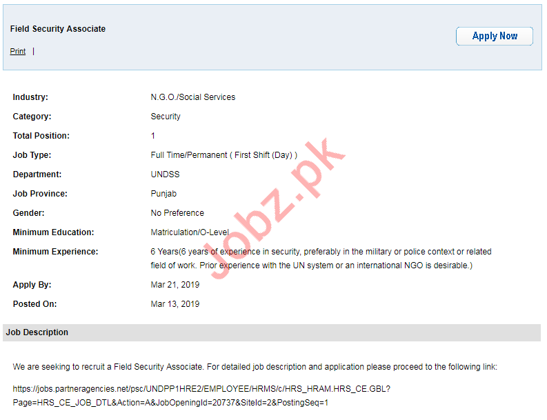 Latest United Nations Department of Safety and Security NGO Posts Lahore 2025