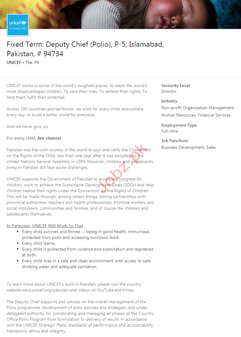 Unicef NGO Job For Deputy Chief Polio In Islamabad