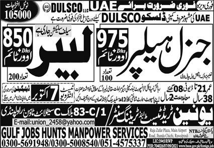 Union Trade Test and Training Center Jobs 2021 in UAE