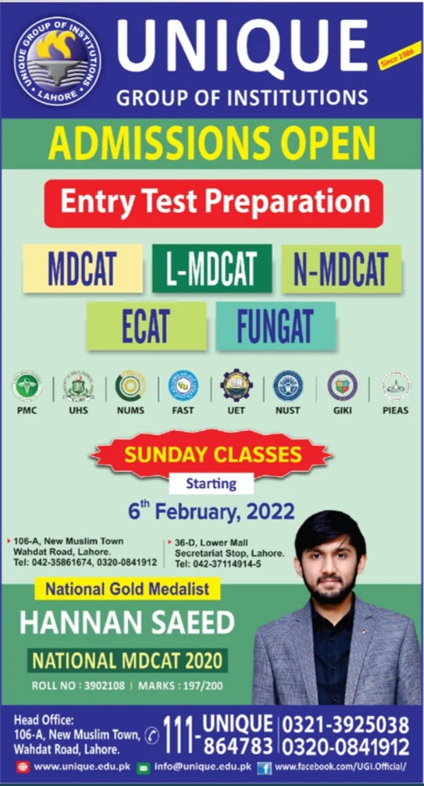 Unique Group of Institutions admissions 2022 has been announced. Eligible students who qualify as per admission criteria in Unique Group of Institutions Lahore Punjab Pakistan can apply in Other College for academic year 2022. Students who want to enroll for academic session 2022 in Intermediate and Bachelor qualification and admission criteria for Private institute can apply till last date 6 March 2022. Read newspaper ad for exact details.